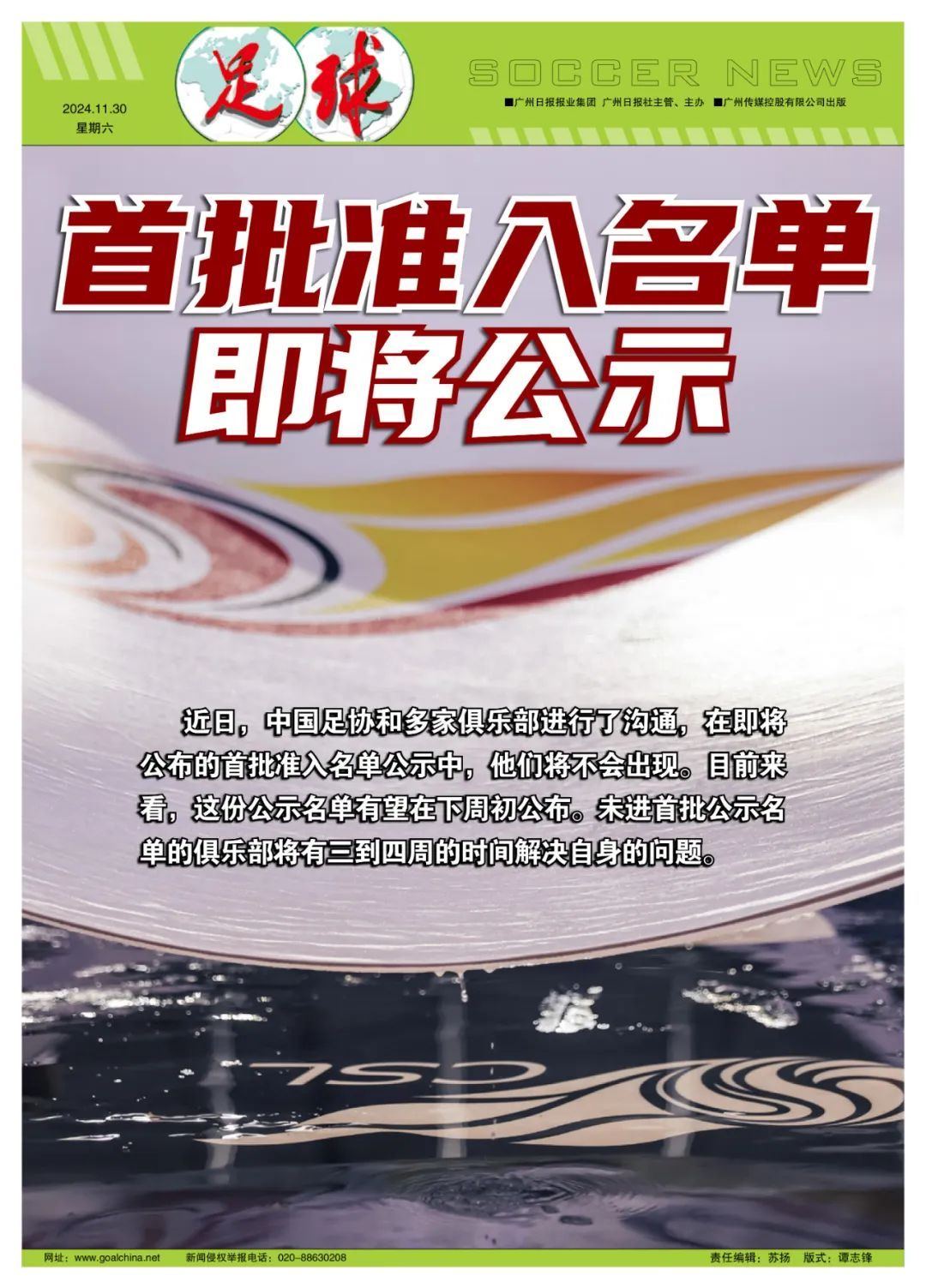 目前,各方了解到的消息显示,中国足协即将公示第一批准入俱乐部名单。在此期间,中国足协和相关俱乐部进行了初步沟通,告知因为存在各种各样的问题,将不会出现在第一批准入名单中。